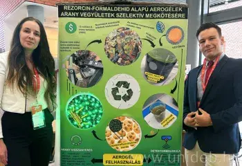 A szó átvitt és a szó szoros értelmében is aranyat ér a Debreceni Egyetem fiatal kutatóinak felfedezése. Bukta Balázs József és Herman Petra egy olyan aerogélt fejlesztett ki, amely az eddigi leghatékonyabb és legfenntarthatóbb módon segít a nemesfémet visszanyerni az elektronikai hulladékokból. Nem csoda, hogy ez a már szabadalmaztatás alatt álló tudományos eredmény elnyerte az I. innOTDK Nagydíját is.