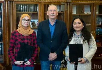 Kétéves kutatási ösztöndíjjal jutalmazta Szilvássy Zoltán rektor azt a három külföldi hallgatót, akik a Debreceni Egyetemet képviselték a Hackatom idei nukleáris medicina-világversenyén. A megnyert magyarországi fordulót követően közülük ketten vettek részt a világdöntőben, ahol hatalmas sikert értek el, harmadik helyen végeztek.